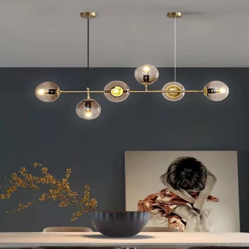Black String rectangular 6 smokey-grey glass bulbs 3 color..