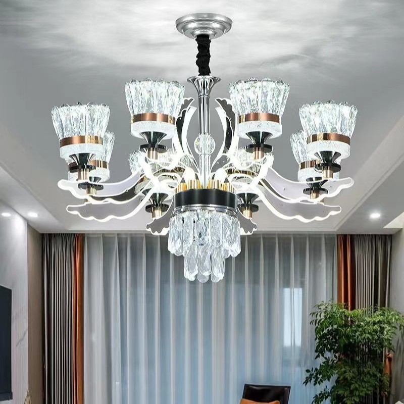 6 Arms Crystal Chandelier Center Crown 60cm.