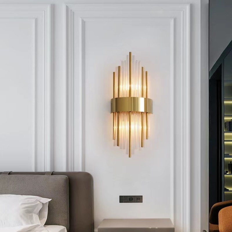 38x12cm Sheild Gold Glassy-like and gold rods double bulb wall light (two in each box)